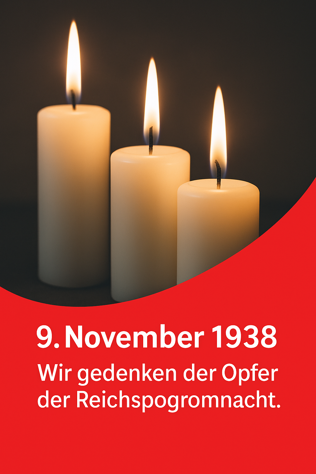 Am 9. November erinnern wir an die Reichspogromnacht des Jahres 1938 – an eine Nacht, in der Hass, Gewalt und Menschenverachtung offen auf die Straßen getragen wurden. Synagogen brannten, jüdische Mitbürgerinnen und Mitbürger wurden gedemütigt, vertrieben, misshandelt und ermordet.